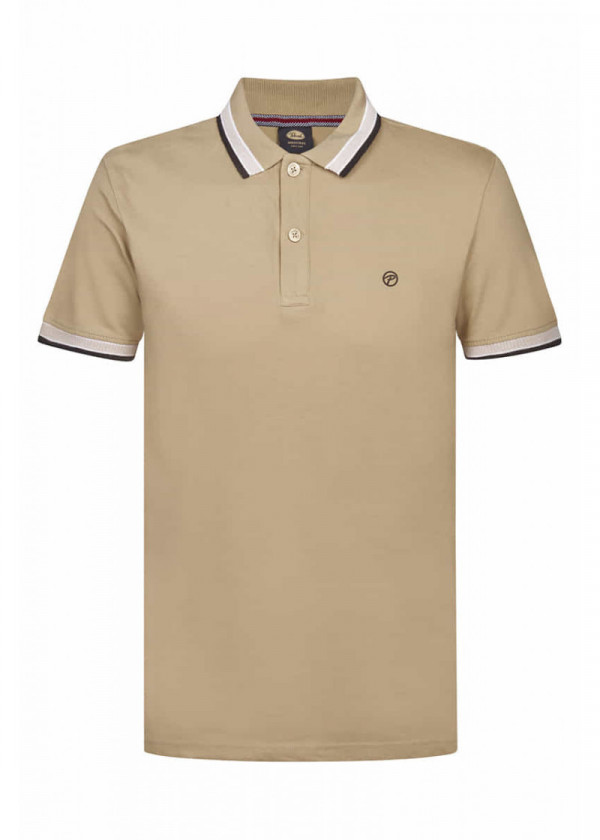 Ova regular fit muška polo majica brenda Petrol Industries u bež nijansi predstavlja idealan spoj sportskog duha i klasične elegancije, prilagođen svakodnevnom stilu. Karakteriše je prepoznatljiv kontrastni rad na kragni i rubovima rukava u vidu belih i tamnoplavih pruga, što majici daje dinamičan i moderan izgled. Na prednjoj strani se nalazi diskretan, vezeni kružni logotip brenda. Sveden dizajn i neutralna bež boja je čine izuzetno zahvalnom za kombinovanje,