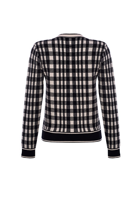 Kardigan sa V izrezom i dugim rukavima sa otvorom na manžetnama. Kopčanje dugmićima sa prednje strane. 50% viskoza 30% poliester 20% poliamid